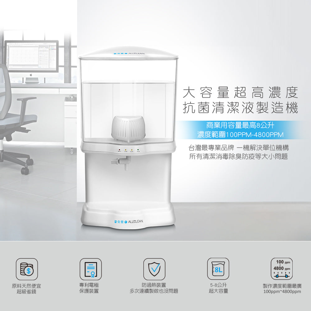 商業型次氯酸抗菌清潔液製造機 容量8公升